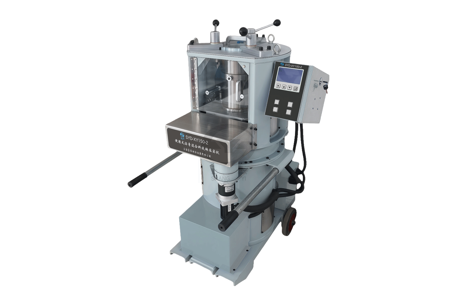 瀝青混合料試件制作方法(旋轉(zhuǎn)壓實(shí)法) JTG 3410-T0736、 JT/T 724、 UNI EN 12697、 ASTM D6925、 AASHTO T312 便攜式瀝青混合料旋轉(zhuǎn)壓實(shí)儀 SYD-XY150-2 按鍵板控制;實(shí)時顯示壓力、次數(shù)、高度;帶脫模一體;帶0度壓實(shí)脫模;伺服電機(jī)結(jié)構(gòu)