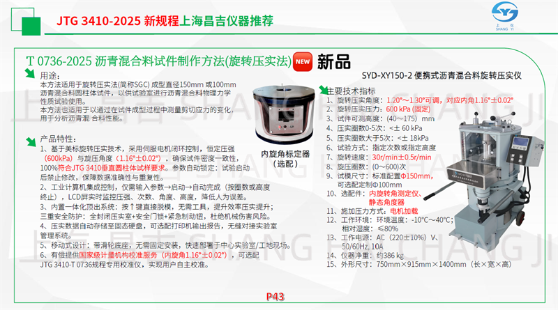 隨著引領(lǐng)行業(yè)發(fā)展的JTG 3410-2025《公路工程瀝青及瀝青混合料試驗(yàn)規(guī)程》正式頒布,新規(guī)程對(duì)試驗(yàn)方法與設(shè)備提出了新要求。為滿足廣大客戶的迫切需求,上海昌吉儀器第一時(shí)間為您詳細(xì)梳理常用配件及新增配件更新指南,確保您的試驗(yàn)工作無縫銜接新標(biāo)準(zhǔn)。